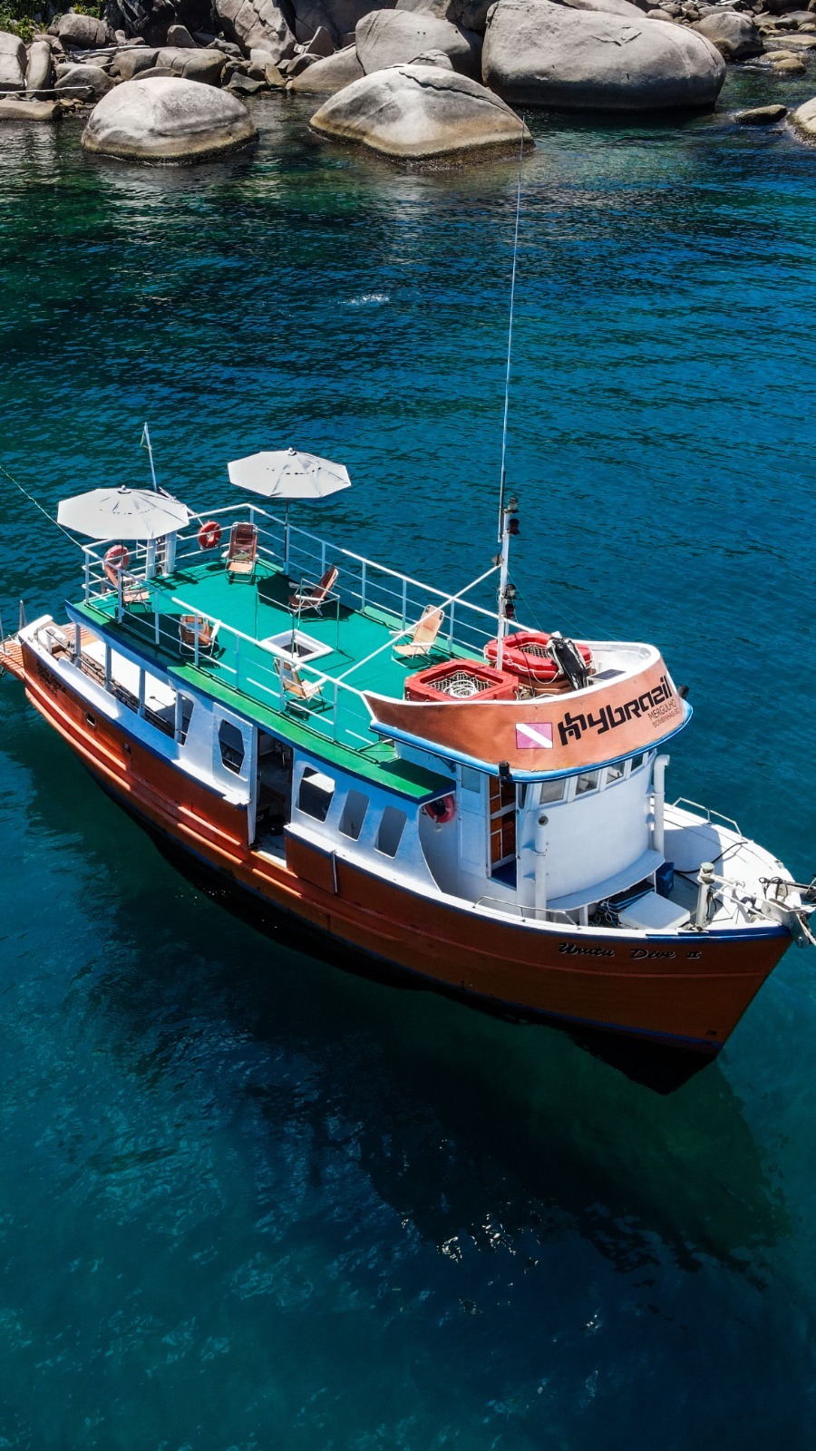 Nosso barco URUTU DIVE II uma embarcação projetada especialmente para a prática do mergulho, oferece todo o conforto necessário, seja pela funcionalidade do seu desenho assim como pelo conforto,( duchas de água doce, banheiros, vestiários, solarium com resposeiras, mesa de frutas, bolos etc, em fim projetado para atender todas as exigências dos nossos clientes e proporcionar conforto e praticidade.